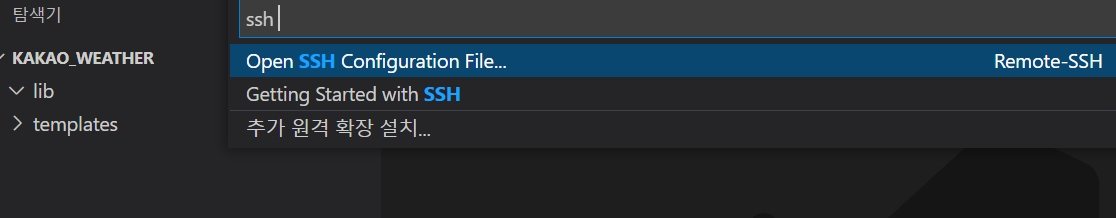 3. VS Code에서 remote-SSH 확장프로그램을 설치한 다음 Open SSH configuration FIle로 들어가줍니다.