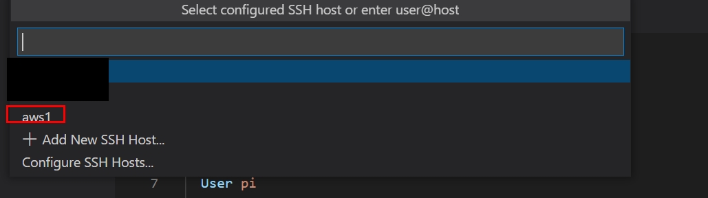 6. 그 후 다시 원격창에서 connect to host를 누르면 아까 작성한 aws1이 보이게 됩니다.