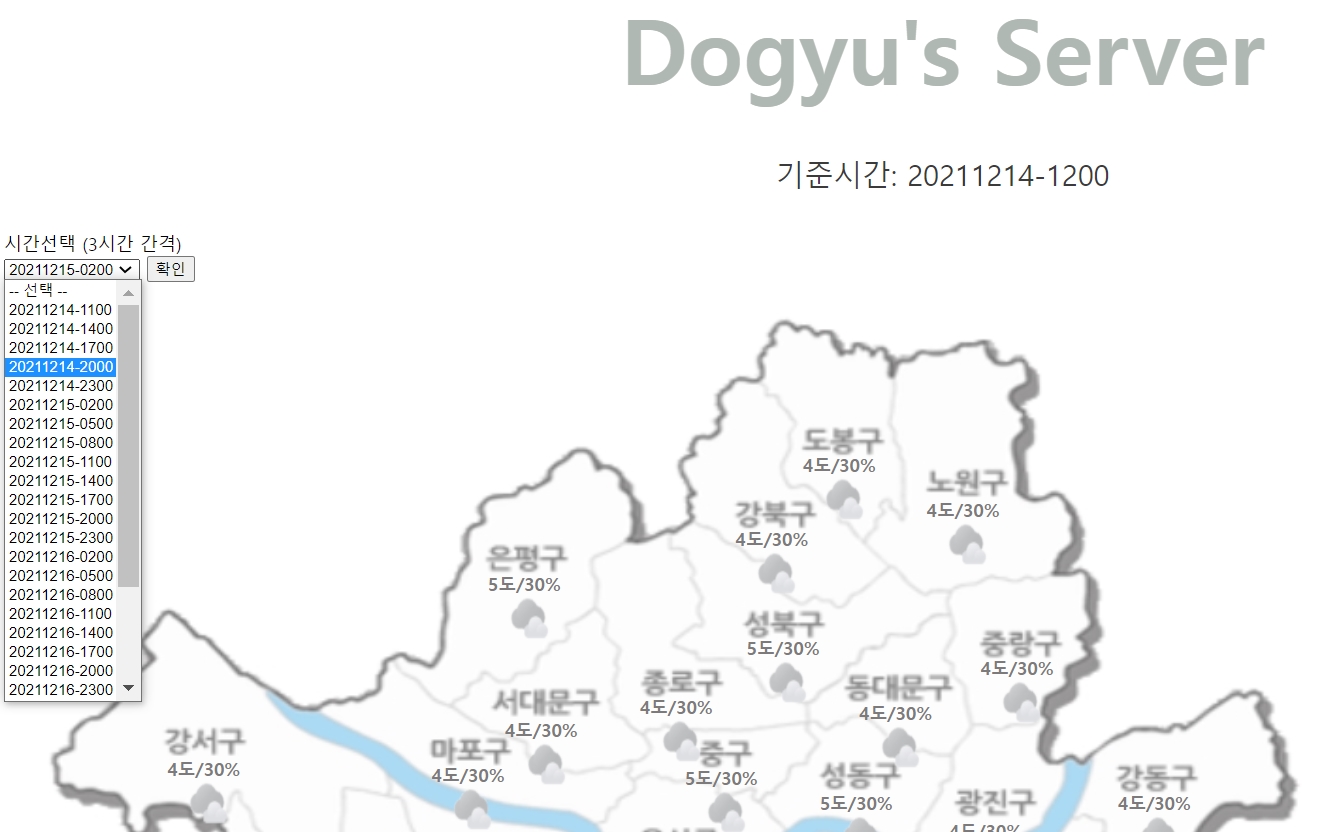 기준시간에 맞춰서 밑에 보이는 각 구별의 날씨또한 시간에 맞춰서 바뀌게끔 하고 싶었습니다.