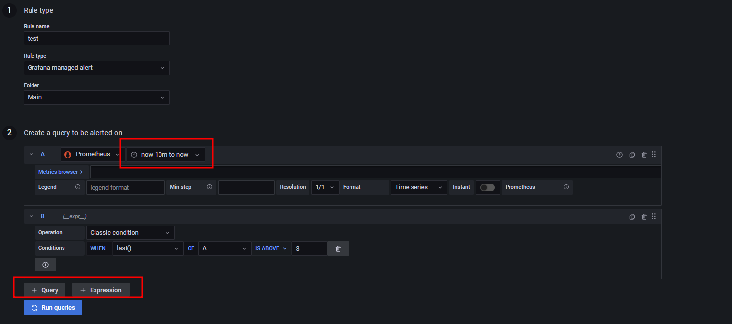 위와 같이 설정하고 싶다면 Grafana의 Alert Rule의 쿼리 부분을 계산해야합니다.